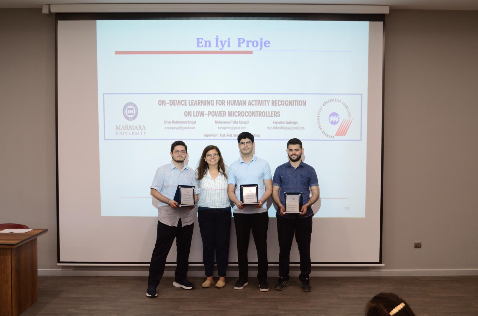 [16/06/25] The graduation project by Muhammed Talha Karagül, Ensar Muhammet Yozgat, and Feyzullah Asıllıoğlu, titled “On-Device Learning for Human Activity Recognition on Low-Power Microcontrollers,” supervised by Dr. Sanem Arslan Yılmaz, has been recognized as the Best Project in the Computer Engineering Department at Marmara University for 2025. Congratulations!